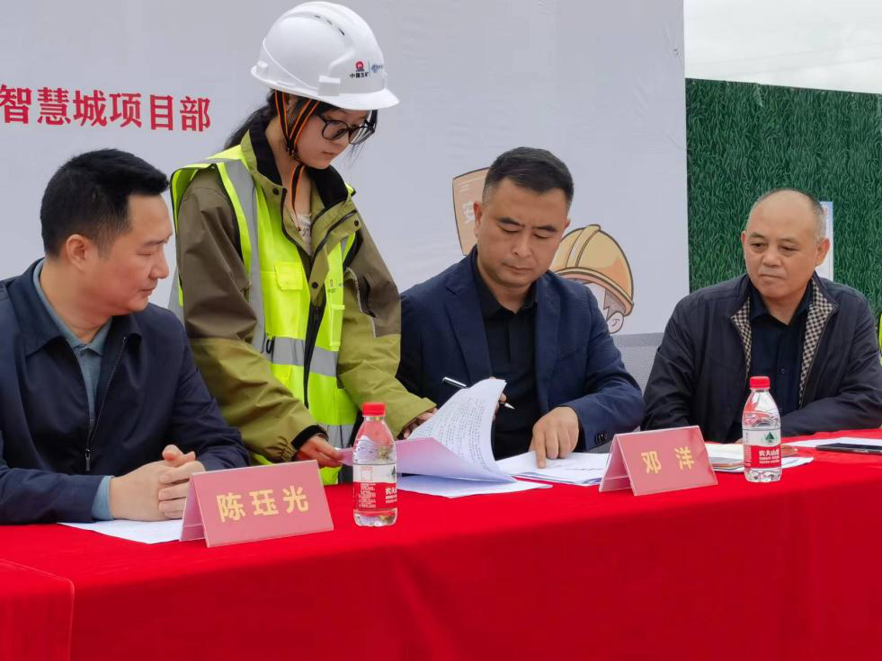 儀式上,全體參建人員共同宣讀安全生產(chǎn)誓詞,三方責(zé)任主體分別簽署《安全生產(chǎn)責(zé)任書》《質(zhì)量、進度、安全文明施工責(zé)任書》。