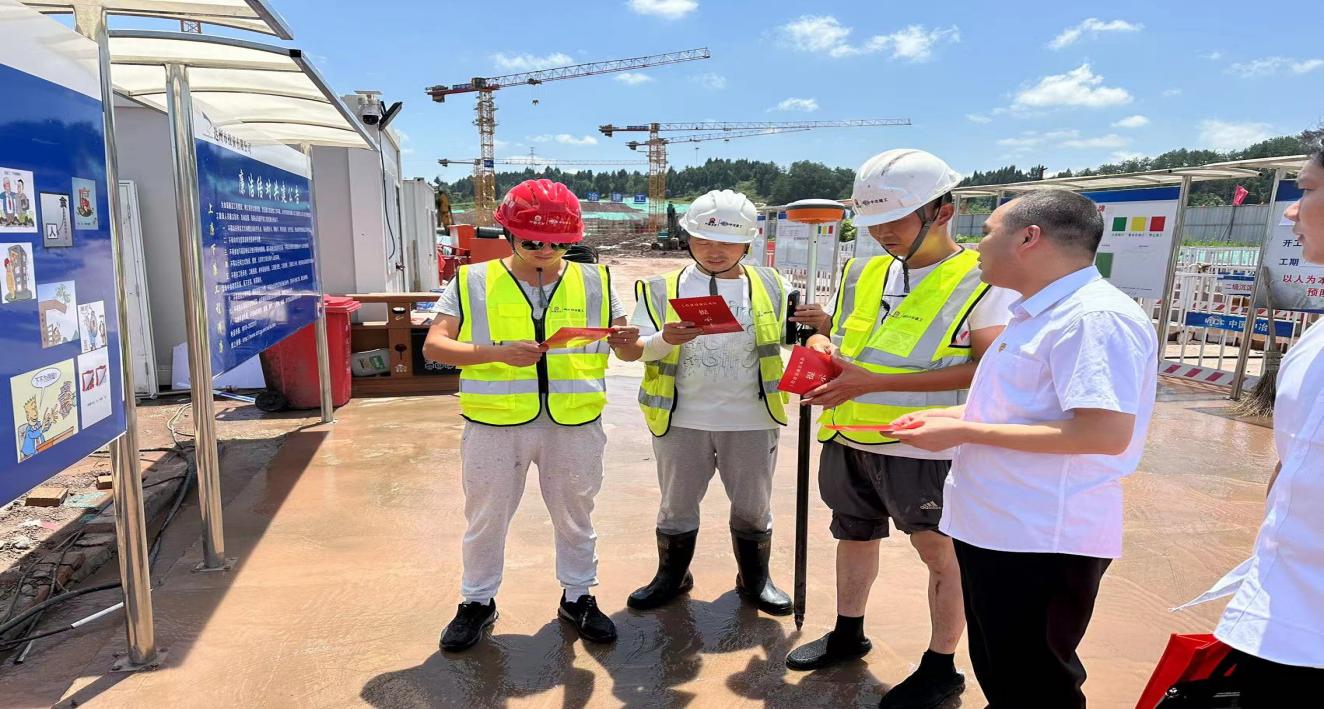 紀(jì)檢干部向工程現(xiàn)場管理人員發(fā)放《廉潔風(fēng)險(xiǎn)提示卡》(吳曉攝)