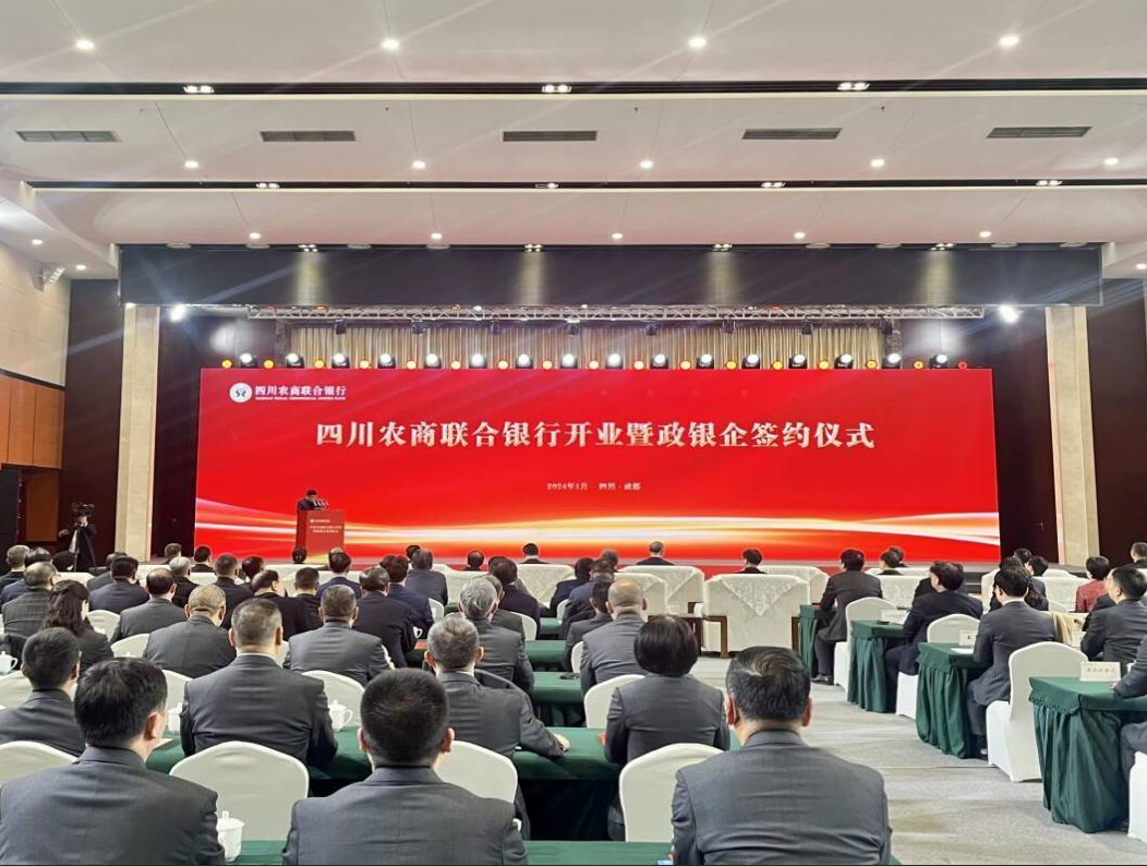 2024年1月29日,四川農(nóng)商聯(lián)合銀行開(kāi)業(yè)暨政銀企簽約儀式在成都舉行。